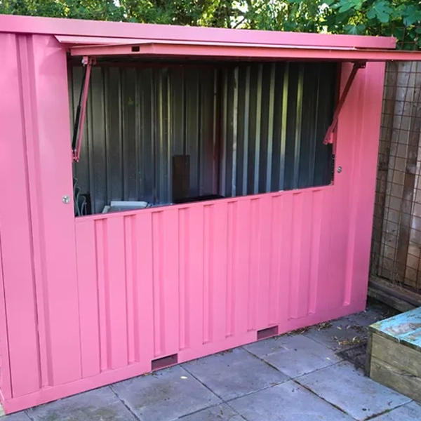 El unidad bar tiene tamaños variados y está equipado con una puerta doble super resistente con doble seguro. Las dimensiones de nuestro bar contenedor plegable son similares a este contenedor. La diferencia con el bar contenedor plegable es su toldo abatible dándole una apariencia de bar o tienda personal. Este contenedor plegable es capaz de todo lo que requiera su empresa al adquirirlo. El toldo del contenedor también puede ser cerrado y asegurado para mantener todo lo de su interior en óptimas condiciones. Debido a que el bar contenedor cuenta con la puerta doble con seguro doble como dicho anteriormente este también puede contener artículos grandes, como barriles de cerveza o refrigeradoras. Por lo tanto, es ideal para servir bebidas a los invitados o amigos. Un bar contenedor plegable sencillo pero robusto y duradero.