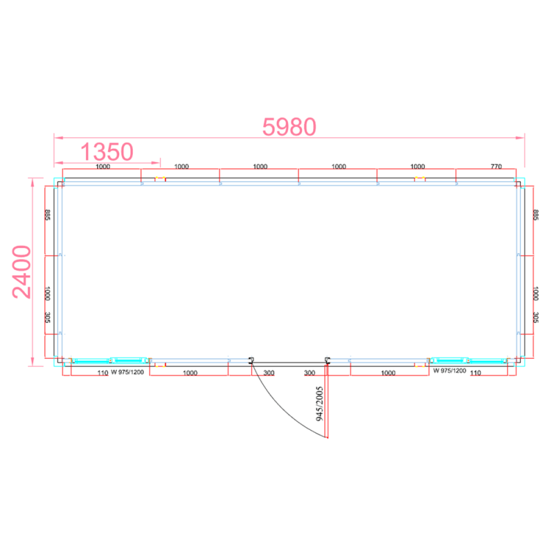 Anchura: 2.400 mm exterior / 2.200 mm interior