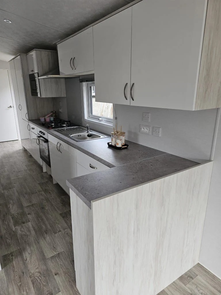 Descubre la Casa Móvil Disfruta, diseñada para ofrecer comodidad y modernidad. Con 3 dormitorios, cocina brillante equipada con microondas, puerta doble en el salón y baño completo con ducha y radiador, esta casa móvil combina practicidad y estilo para toda la familia.
