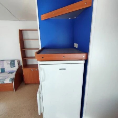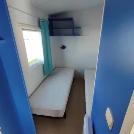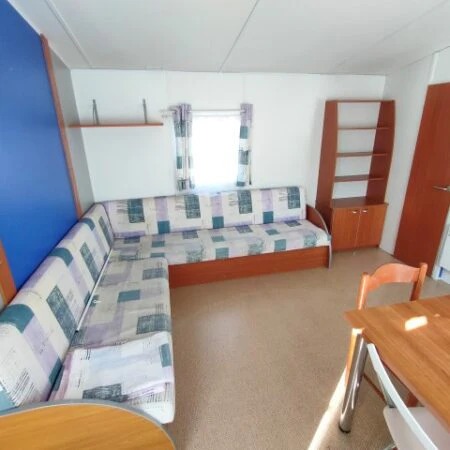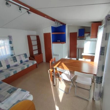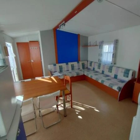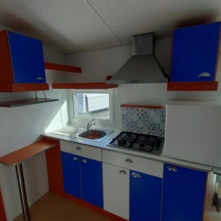 Esta casa móvil de 8,3 x 4 m combina funcionalidad y confort en un diseño práctico. Dispone de 2 habitaciones, un baño, un salón acogedor, cocina totalmente equipada y un W.C. independiente.Incluye equipamiento esencial: frigorífico, placa de cocina, extractor, banco de asiento, calentador de agua a gas y radiador eléctrico.