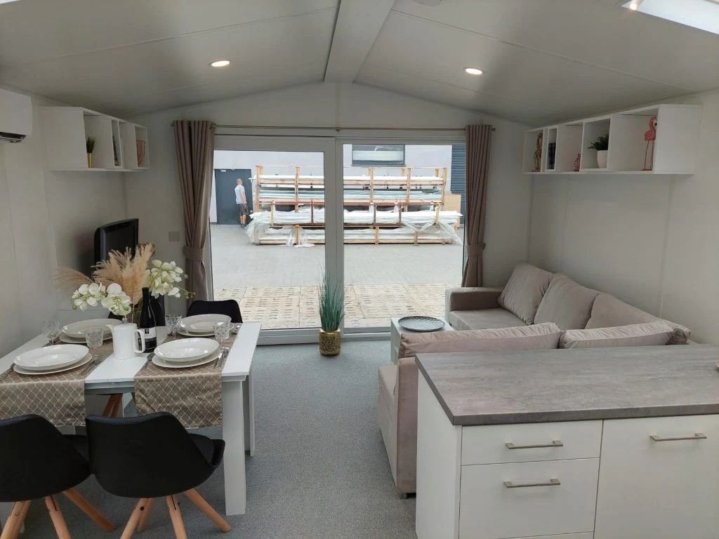 La casa móvil Capri redefine el concepto de vivienda móvil gracias a su diseño moderno y eficiente. Sus 96 m² interiores destacan por la amplitud y la luminosidad, respaldados por una estructura de madera escandinava y un chasis galvanizado de alta resistencia. El aislamiento en lana de roca no solo optimiza el consumo energético, sino que también asegura un alto nivel de seguridad. Su sistema de ventilación mantiene la frescura del ambiente, mientras que las ventanas de doble acristalamiento refuerzan el confort y la eficiencia. El interior, recubierto con paneles de yeso impermeables y fáciles de mantener, convierte a la Capri en una solución perfecta para quienes buscan una vivienda práctica, duradera y estéticamente atractiva.